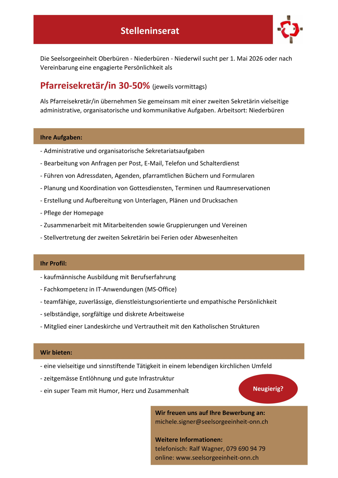 Pfarreisekretärin 30-50% 2026