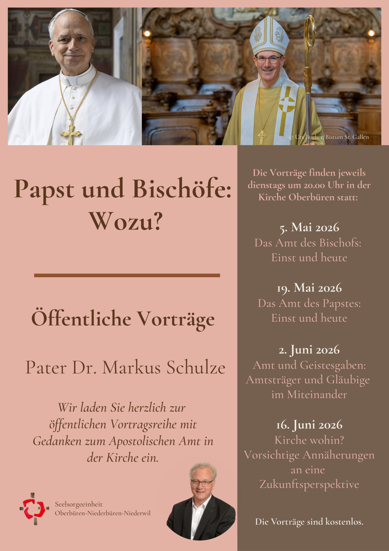 Die Vorträge finden jeweils am Dienstag um 20.00 Uhr in der Kirche Oberbüren statt: